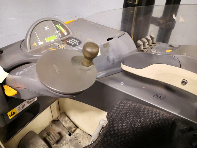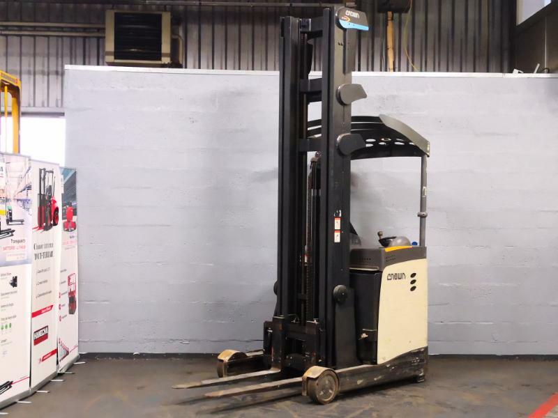 | Infos commerciales | Un chariot à mât rétractable CROWN à mât déporté : productivité et sécurité pour un rendement maximum. Le chariot à mât rétractable Crown ESR5000-1.4 est conçu pour répondre aux exigences de productivité et de rentabilité de votre entreprise. Le mât déporté à très haute visibilité – breveté par Crown – offre une vue dégagée et plus large entre les profilés de mât. La visibilité sur le bout des fourches et l'extrémité des longerons permet une prise de palette plus efficace et un positionnement plus précis. Le positionnement incliné des flexibles et des poulies de chaînes et la conception unique du dosseret de charge améliorent encore la visibilité vers le haut et vers l'avant. Le positionnement des charges et facilité par des traverses de mât et des supports de toit de protection en position oblique. L'ensemble châssis / toit de protection est composé d'une seule et très solide pièce ce qui procure une très grande rigidité. Le berceau de rétraction de la gamme ESR5000 est constitué d'acier épais et d'un système roulements ajustables afin de minimiser les jeux de fonctionnement et rigidifier l'ensemble châssis / mât. Avec la fonction 360° Select, l'opérateur peut choisir entre une direction 180° ou 360° selon son environnement de travail, son niveau d'expérience ou selon ses préférences. Le tableau de bord de la gamme ESR5000 fournit toutes les informations inhérentes au fonctionnement du chariot. Fonctionnant grâce à un circuit électrique de 48 volts et bénéficiant de la technologie AC (moteur asynchrone), le ESR5000-1.4 offre une capacité de 1400kg. Ce matériel est équipé d'un système permettant de réduire la vitesse dans les courbes - Vitesse de translation en mode P1 : 14 Km/h, en mode P2 : 12 Km/h. Les chariots à mât rétractables ESR5000-1.4 ESR5000-1.6 etESR5000-2.0 offrent une visibilité incomparable grâce au mât décalé (exclusivité CROWN). La fonction 360 Select permettant de choisir la rotation de la roue directrice et l'indicateur de position de fourches permettent un contrôle parfait du chariot. Existe aussi en version pantographe. Le chariot à mât rétractable Crown ESR5000-14 d'une capacité de 1400kg, permet stocker efficacement des marchandises en grande hauteur, dans des allées difficiles d'accès. |