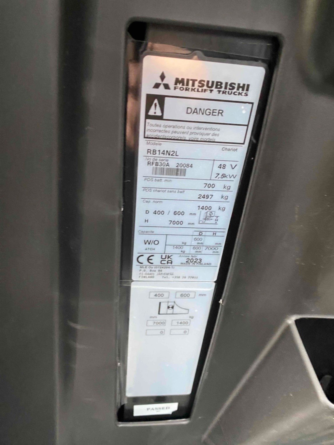 | Capacité de levage | 1 400 kg |