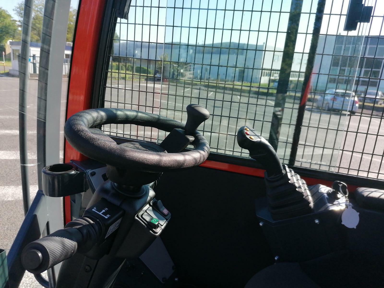 | Détails | Colonne de direction réglable Joystick de commande des fonctions hydrauliques levée inclinaison Sortie de mât (+2 fonctions possibles) Siège grand confort type BEGE 4 Phares de travail LED Bip de recul Feu à éclat Eclairage Code de la Route Chassis inclinable 2 Roues motrices 2 Roues directives Chauffage / désembuage Réservoir carburant 85L Section fourches 200x50 Levée libre (h2) :1 910 mm écartement intérieur fourches minimum : 65mm écartement intérieur fourches maximum : 830mm |